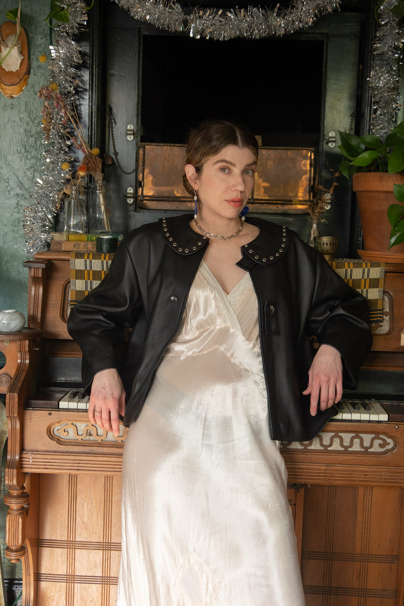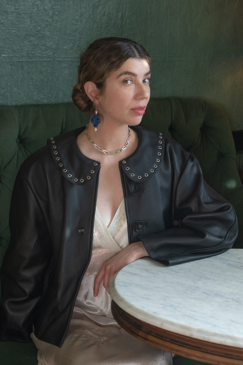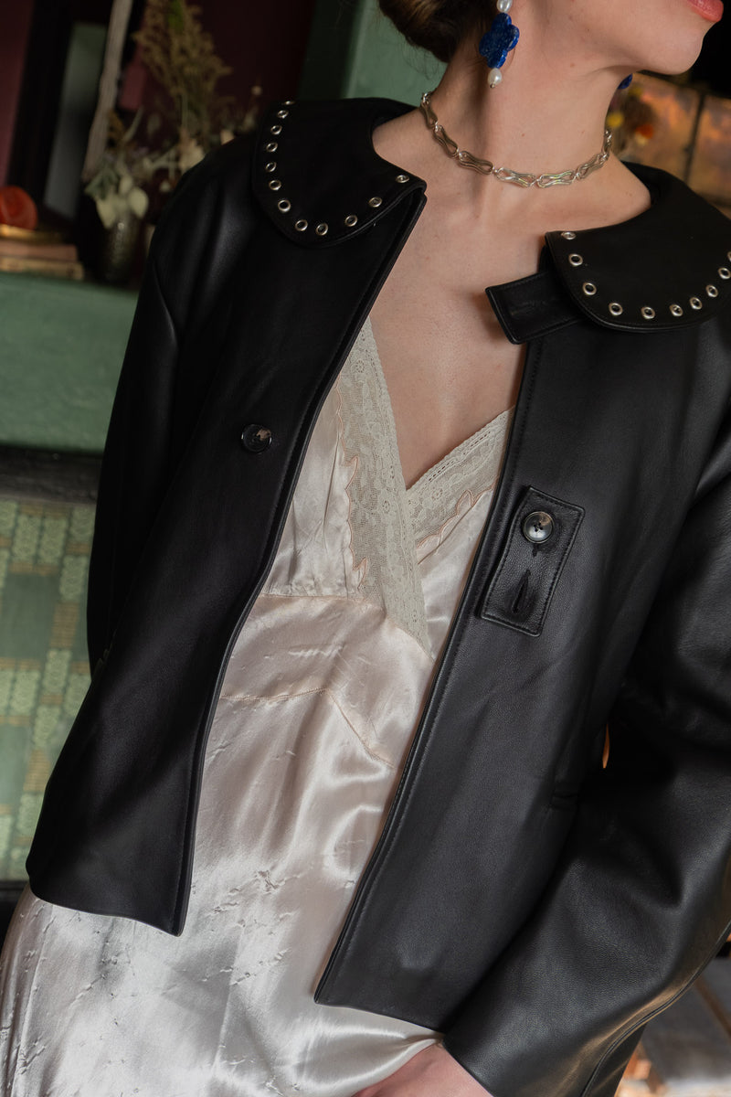 Leather Ellie Eyelet Jacket in Black