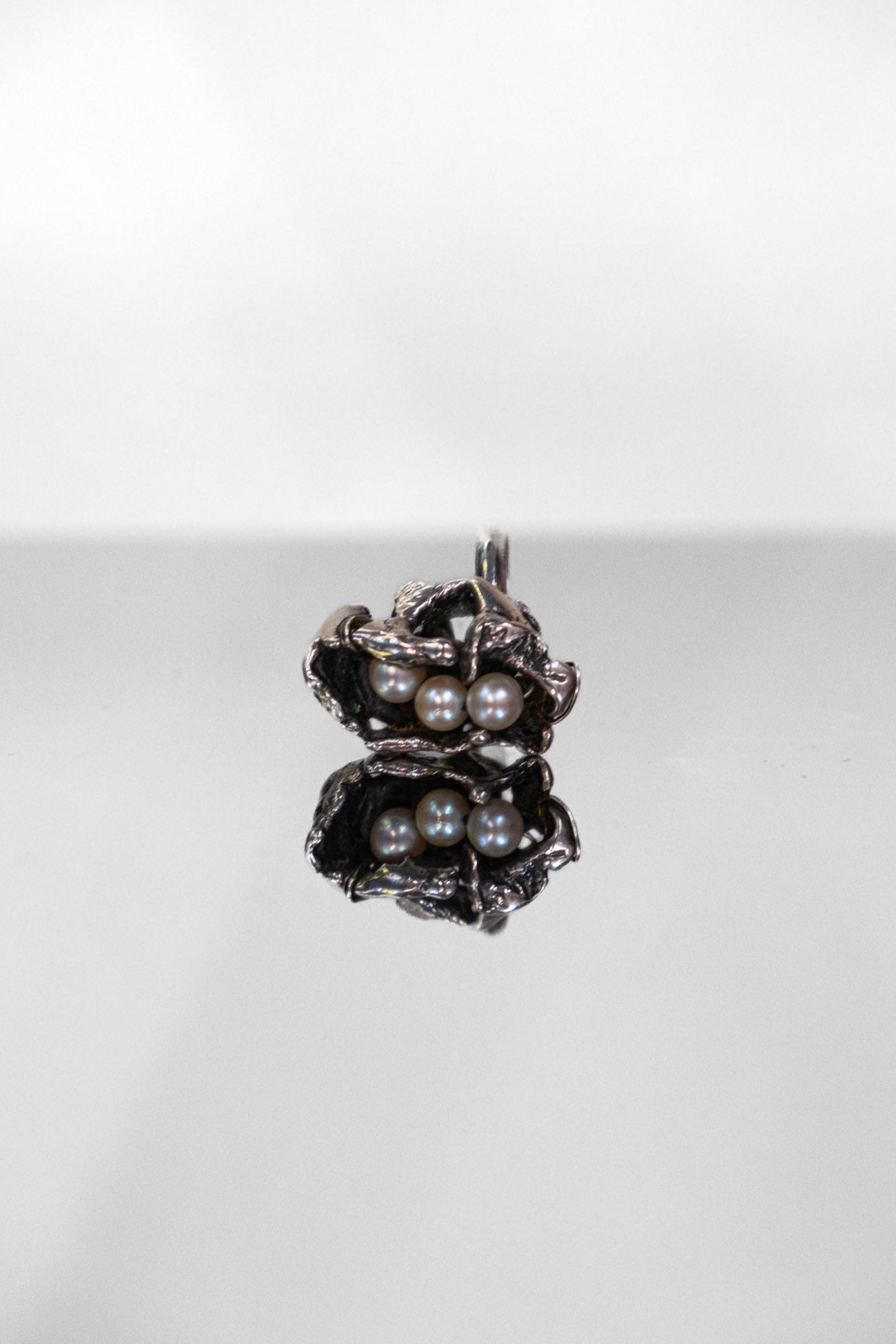 Vintage Sterling Silver Brutalist Double Pearl Ring
