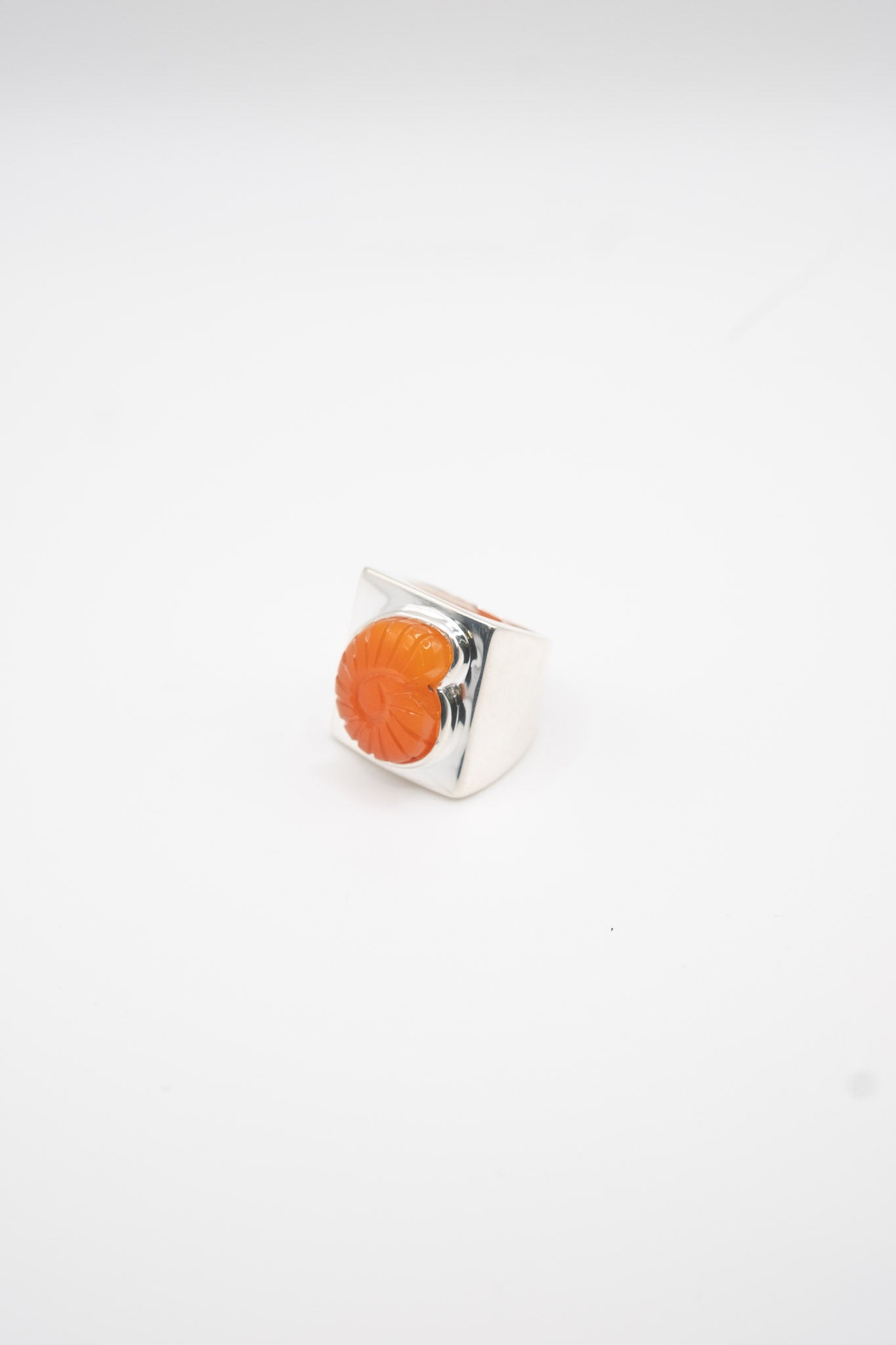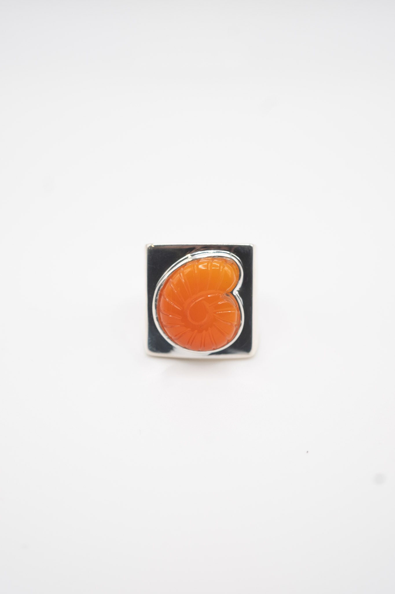 Carved Nautilus Shell Ring in Sterling Silver & Red Onyx