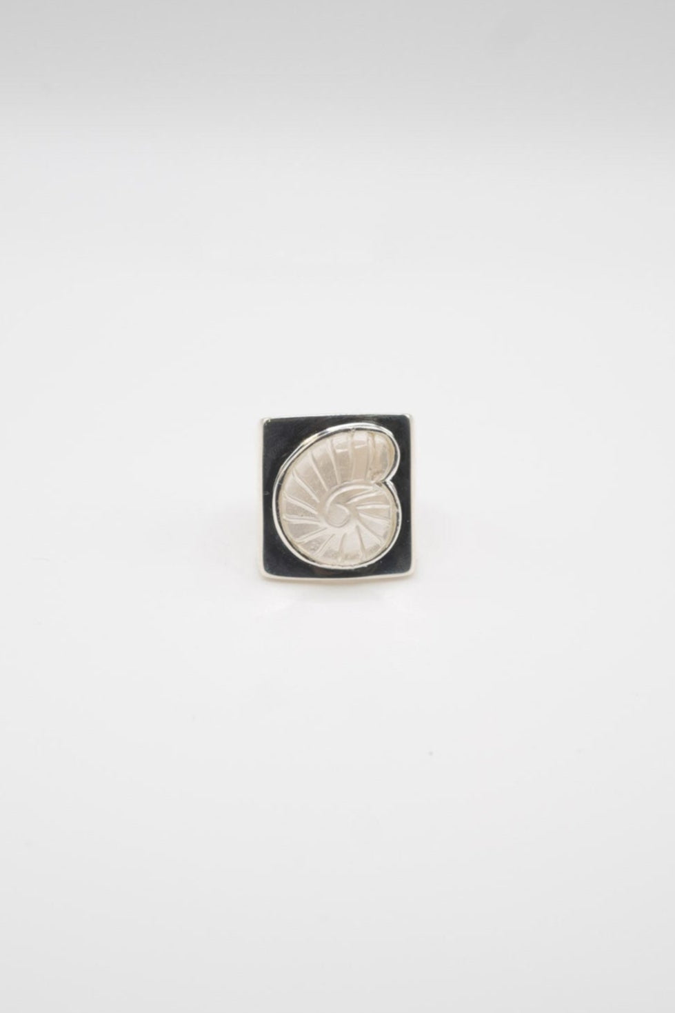 Carved Nautlius Shell Ring in Sterling Silver & Crystal