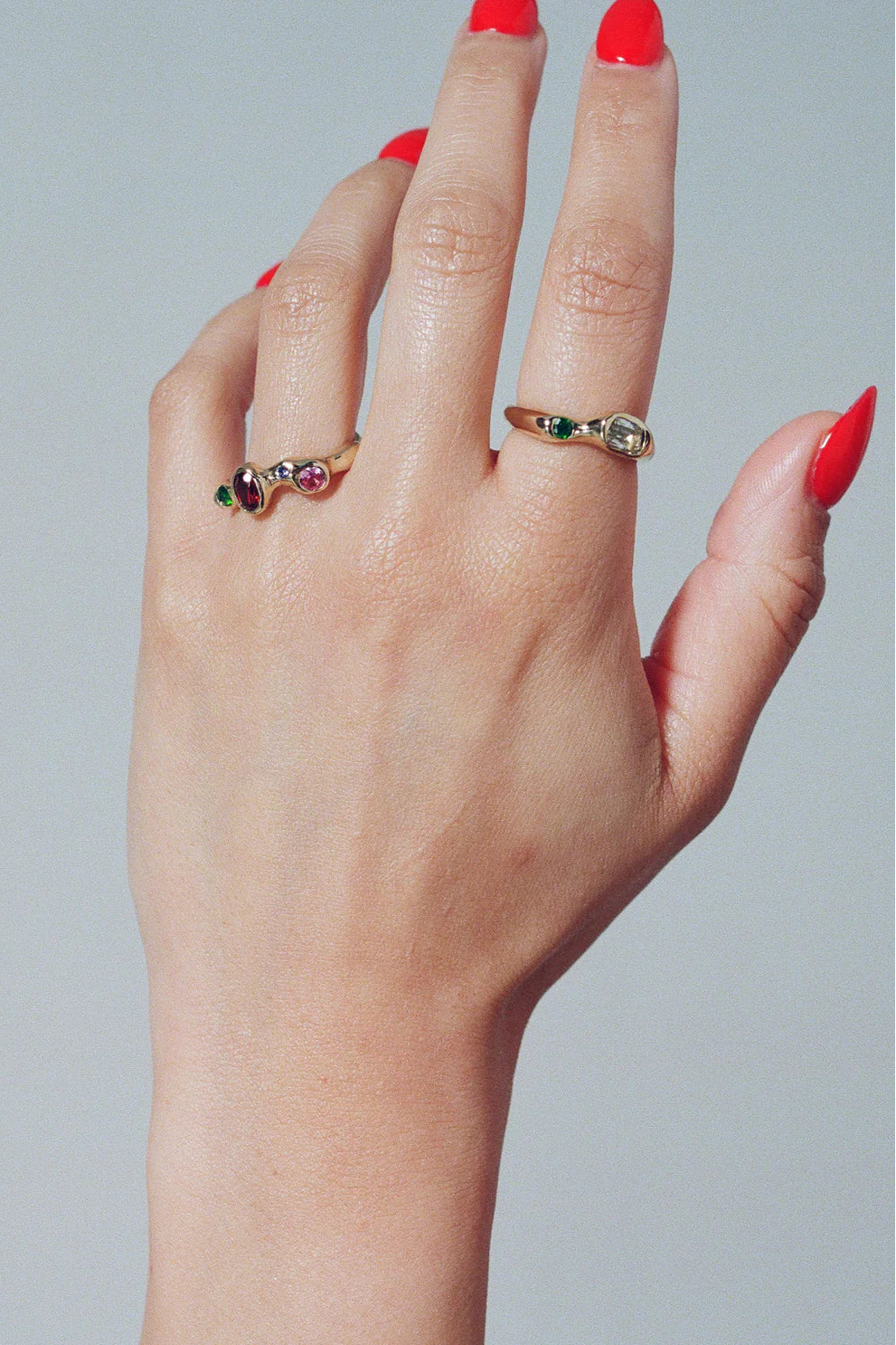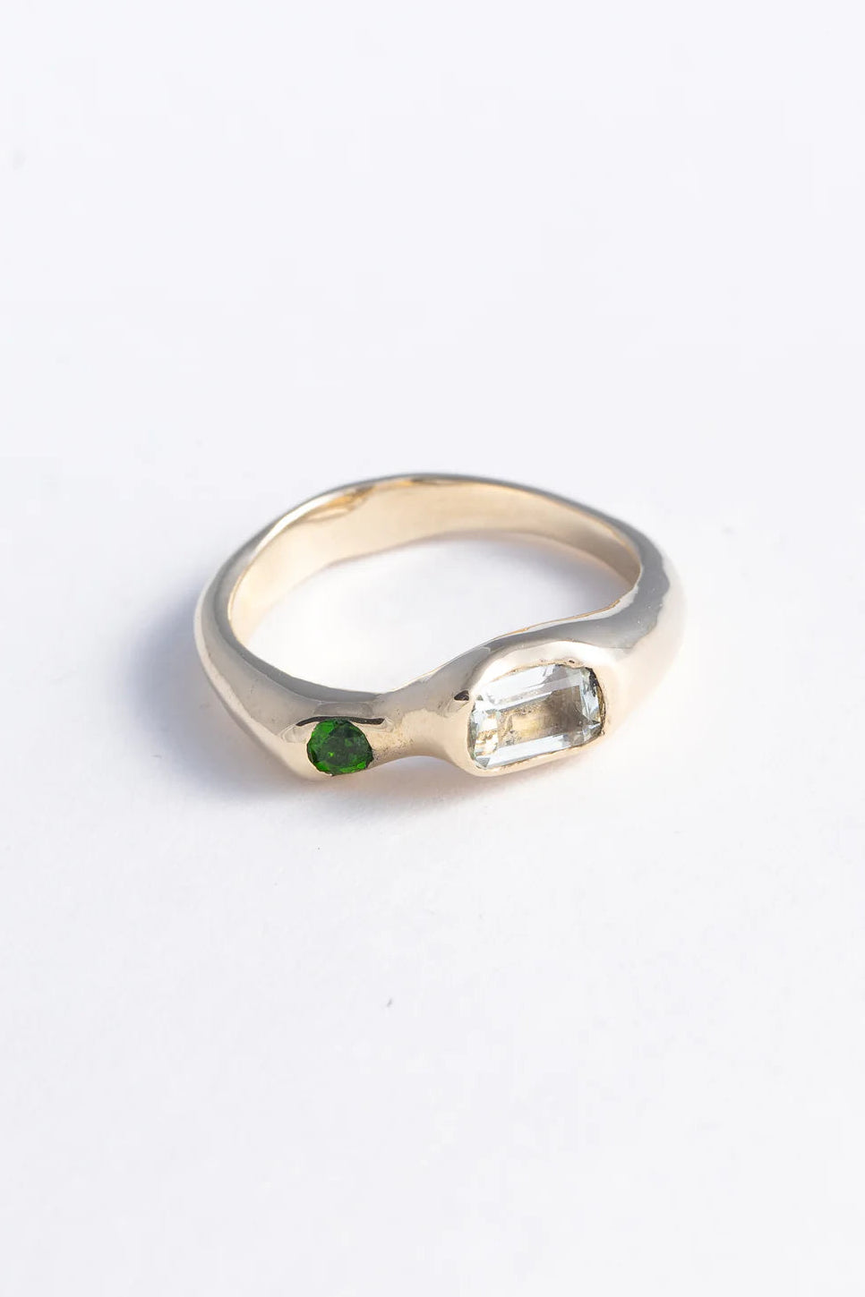 Mer Ring in Gold Plated Bronze, Green Amethyst & Chrome Diopside